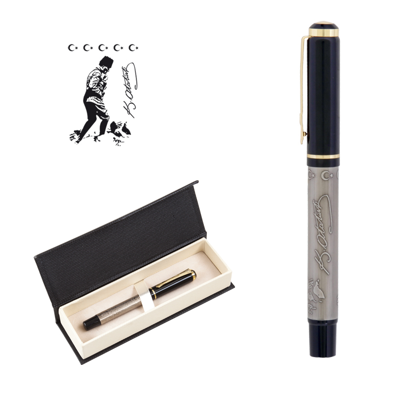661-KR Atatürk Kabartma Figürlü Metal Roller Kalem Seti